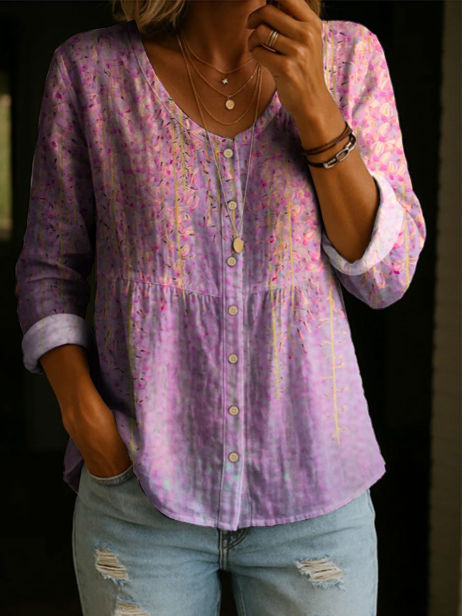 Women's Floral Pattern Art Print Casual Cotton Shirt
