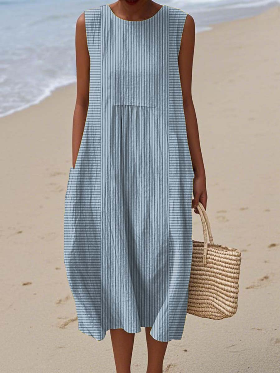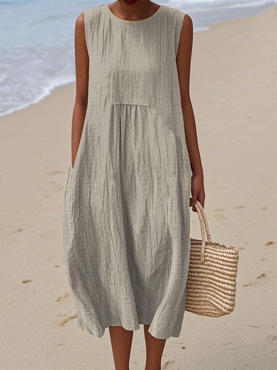 Women's Abstract Geometric Line Pattern Art Print Sleeveless Cotton Pocket Wrap Dress